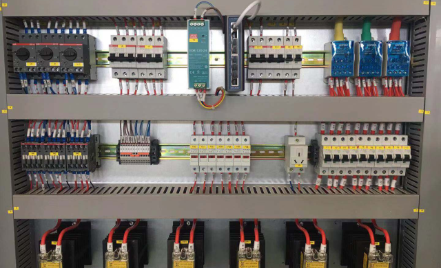● 擠出機電氣控制柜包括電源進(jìn)線(xiàn)柜、主機驅動(dòng)系統柜 、擠出機PLC控制柜 、輔機控制柜、觸摸屏操作臺幾個(gè)單元,主機變頻器驅動(dòng)系統和擠出機PLC控制系統獨立分區安裝,溫控單元安裝在機身上,減少接線(xiàn)和干擾;