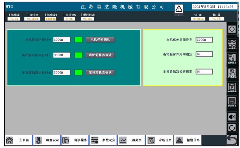 ● 實(shí)際統計擠出機開(kāi)機時(shí)間和運行時(shí)間,減速箱、主電機、控制柜按運行時(shí)間,達到保養維護周期后及時(shí)提醒設備維護人員對相應設備進(jìn)行維護